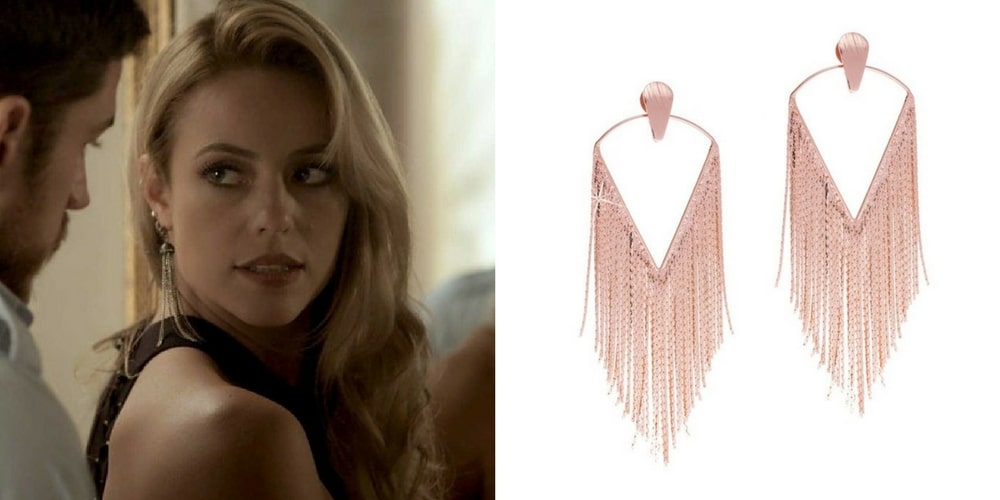 Outro brinco que não sai da orelha da Jeiza nas horas livres são os de franjas. Os folheados mais usados são os em ouro 18k e em ródio negro, mas nada impede que ela use um ródio branco ou ouro rosé, que está fazendo o maior sucesso. O importante é abusar dos brincos de franja.